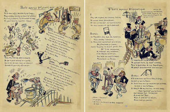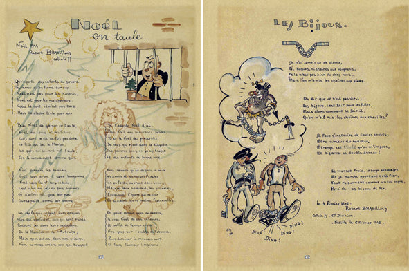 La prison ! Un monde à part. Le greffier et la fouille. La cellule et ses murs décatis comme horizon indépassable. Le café du matin et la soupe du soir. Les lettres d’amour, écrites d’une main hésitante par l’épouse ou l’amante, relues cent fois. L’ennui qui étreint. La promenade dans la cour et les mots échangés au parloir. Le regard à travers les barreaux. Les moments d’espoir et les instants de peine. Les regrets et les remords. La solidarité des proscrits et des maudits. Les visites de l’avocat et les mots de l’aumônier. Les heures de prières pour ceux qui croient. Le dimanche et la messe. Le froid et l’humidité. Les copains qui rient et ceux qui pleurent. Les colis et l’amitié. Les gardiens, brutaux, qui hurlent. Les moustiques et les araignées. Les inscriptions gravées sur les murs, vieilles de plusieurs décennies, qu’il faut déchiffrer. Le chariot qui roule dans le couloir. Les livres qui s’échangent et les cigarettes qui se fument. L’instruction et les juges. Les Cours de justice. L’épitoge herminée rouge des procureurs. Les réquisitoires et les plaidoiries. Les chanceux qui échappent à la condamnation à mort et les malheureux qui y succombent. Et un jour, peut-être, la lourde porte qui s’ouvre sur la liberté retrouvée. Tout cela mis en poème, en chansons – « sur l’air de ...» – et enluminé, mais enluminé ! alors, vertement, car on en voit de toutes les couleurs, par ici : ce n’est pas n’importe quelle prison que celle de l’Épuration !